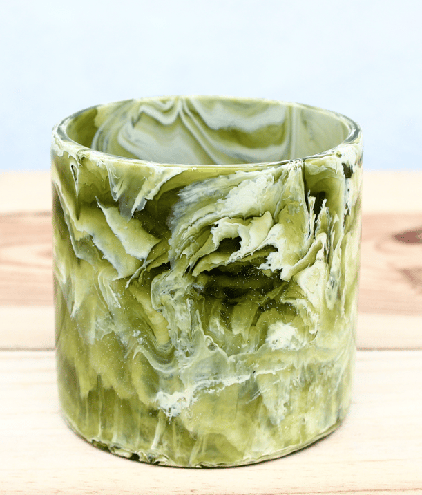 Ce pot est fait à la main à partir des restes de résine polyester utilisée pour fabriquer des planches de surf, au sein de l'atelier Blend Glassing.