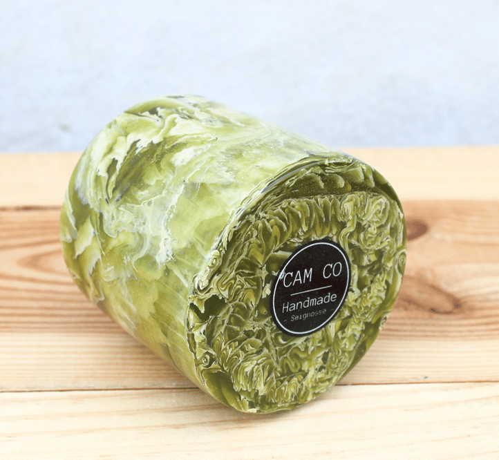 Inspirée de la fabrication d'une planche de surf, la création de ce pot nécessite 5 à 6 phases de ponçage, et un polissage, notamment pour faire apparaitre les effets de la matière. Quant au logo, il est incrusté dans l'objet , comme un logo sur une board, et il ne peut pas s'effacer.