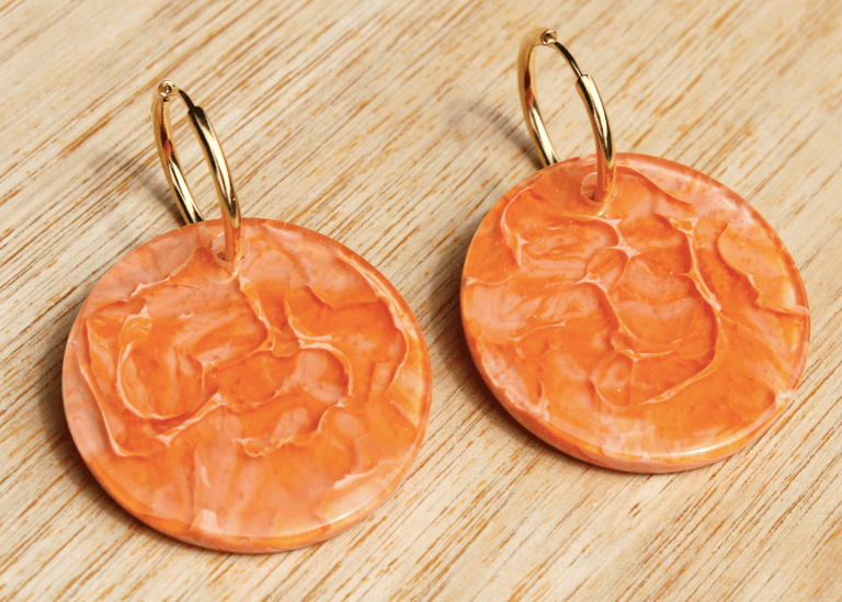 Ces boucles sont faites à la main à partir de restes de résine polyester issus de la fabrication de planches de surf, au sein de l'atelier Blend Glassing, dans Les Landes.